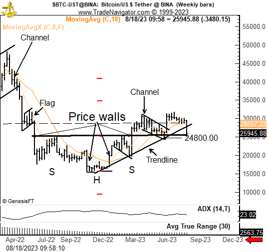 Isso significa que, o Bitcoin cair abaixo de US$ 24.800 seria um sinal preocupante para seu futuro de curto prazo.