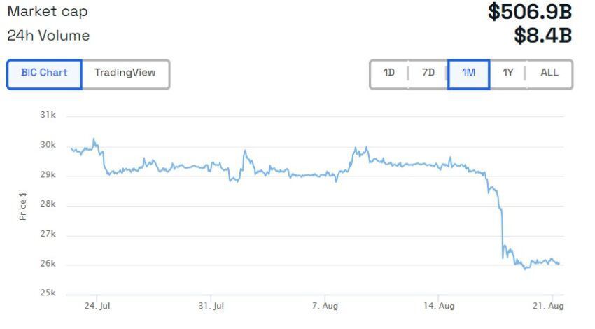 No dia 16 de agosto, o Bitcoin e o mercado global de criptomoedas sofreram uma queda muito significativa. Segundo o analista, a maior criptomoeda por capitalização de mercado corre o risco de perder sua recente tendência de alta se a queda atual se manter. Brandt observou em um tweet: