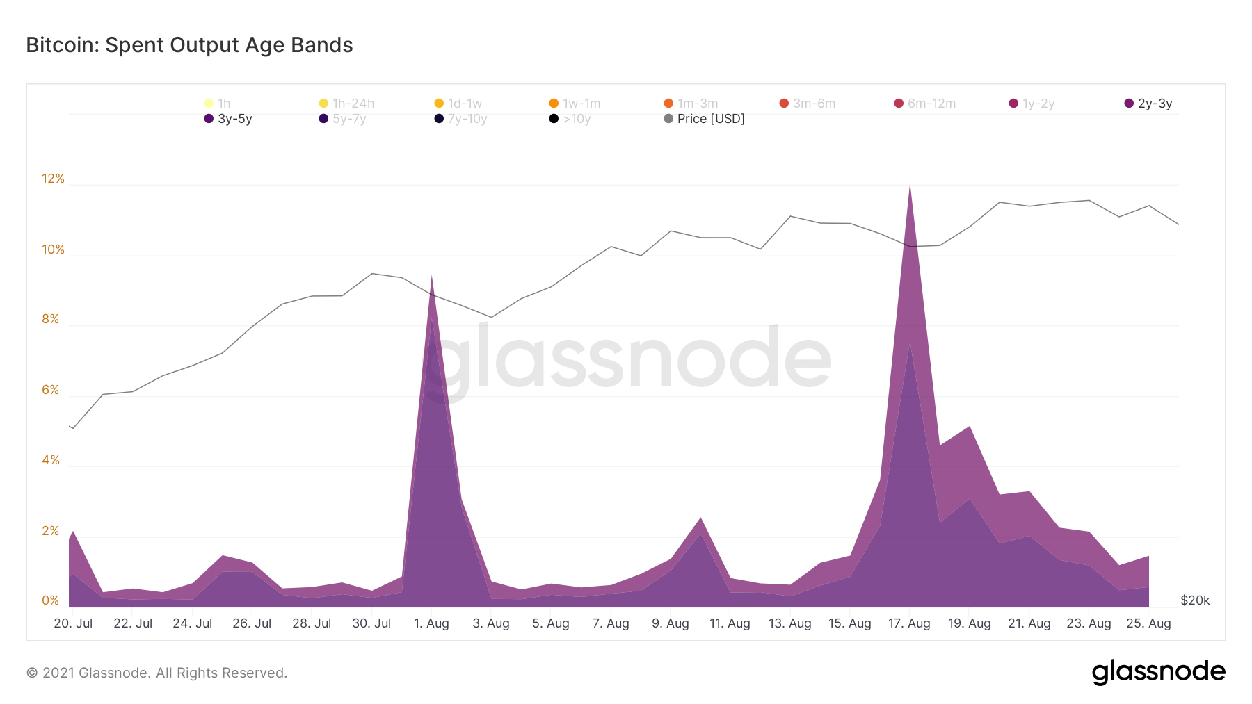 Isso significa que o primeiro pico foi causado pela venda de BTC que havia sido negociado anteriormente entre agosto de 2016 e 2018. Por outro lado, o segundo pico foi causado por esse mesmo período e o de agosto de 2018-2019.