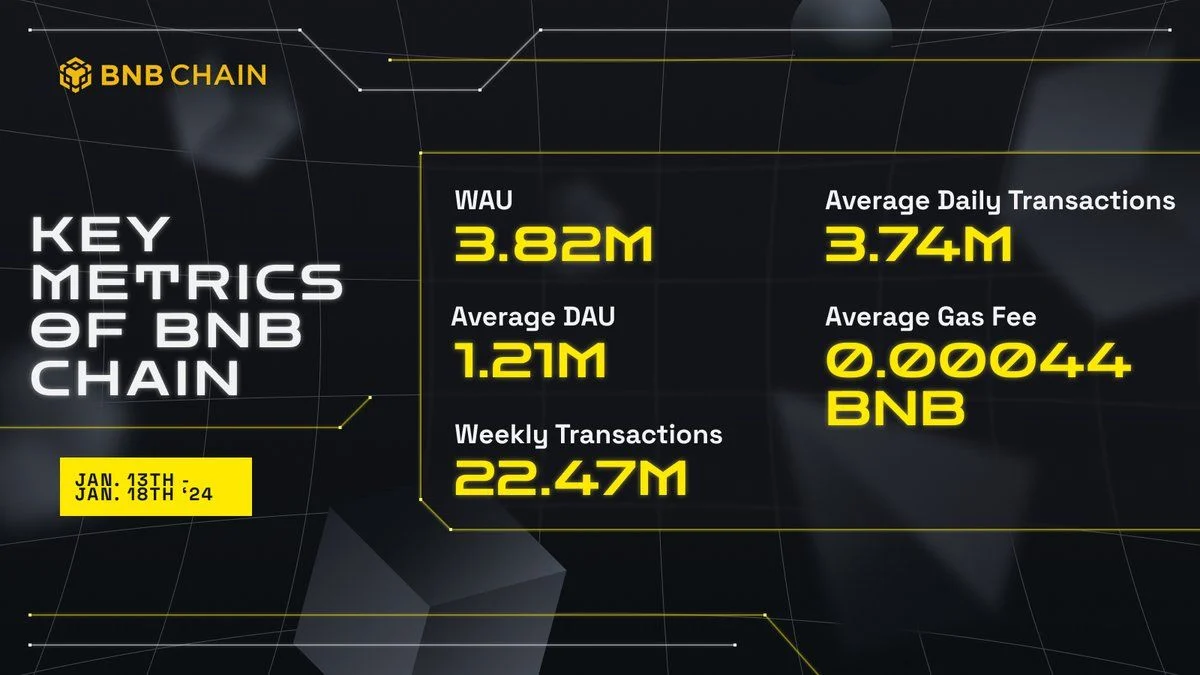 Nesta segunda-feira (22), a equipe da rede BNB publicou estatísticas do ecossistema. O gráfico mostra que houve 3,74 milhões de transações diárias a uma minúscula taxa média de apenas 0,00044 BNB.