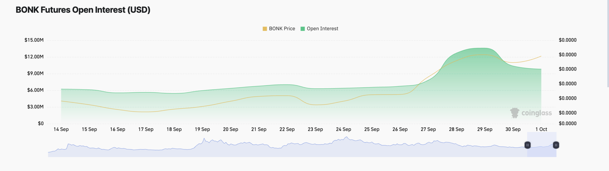 Uma avaliação do mercado de derivativos da BONK revelou uma queda no interesse aberto futuro do token nos últimos dias. Desde que atingiu um pico de três meses de US$ 15 milhões em 29 de setembro, o interesse aberto futuro, que rastreia o número de contratos futuros em aberto, caiu 29%. Atualmente, ele está em US$ 10 milhões.