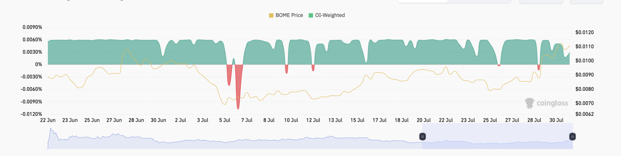 Além disso, os traders que abriram novas posições no mercado futuro estão realizando, em sua maioria, posições que apostam na alta (long). Essa tendência é evidente pela taxa de financiamento positiva da moeda meme nas exchanges. Atualmente, a taxa de financiamento da BOME é de 0,0029%.