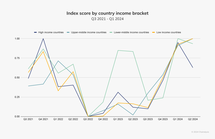 Os dados estão na edição 2024 do relatório Global Crypto Adoption Index da Chainalysis