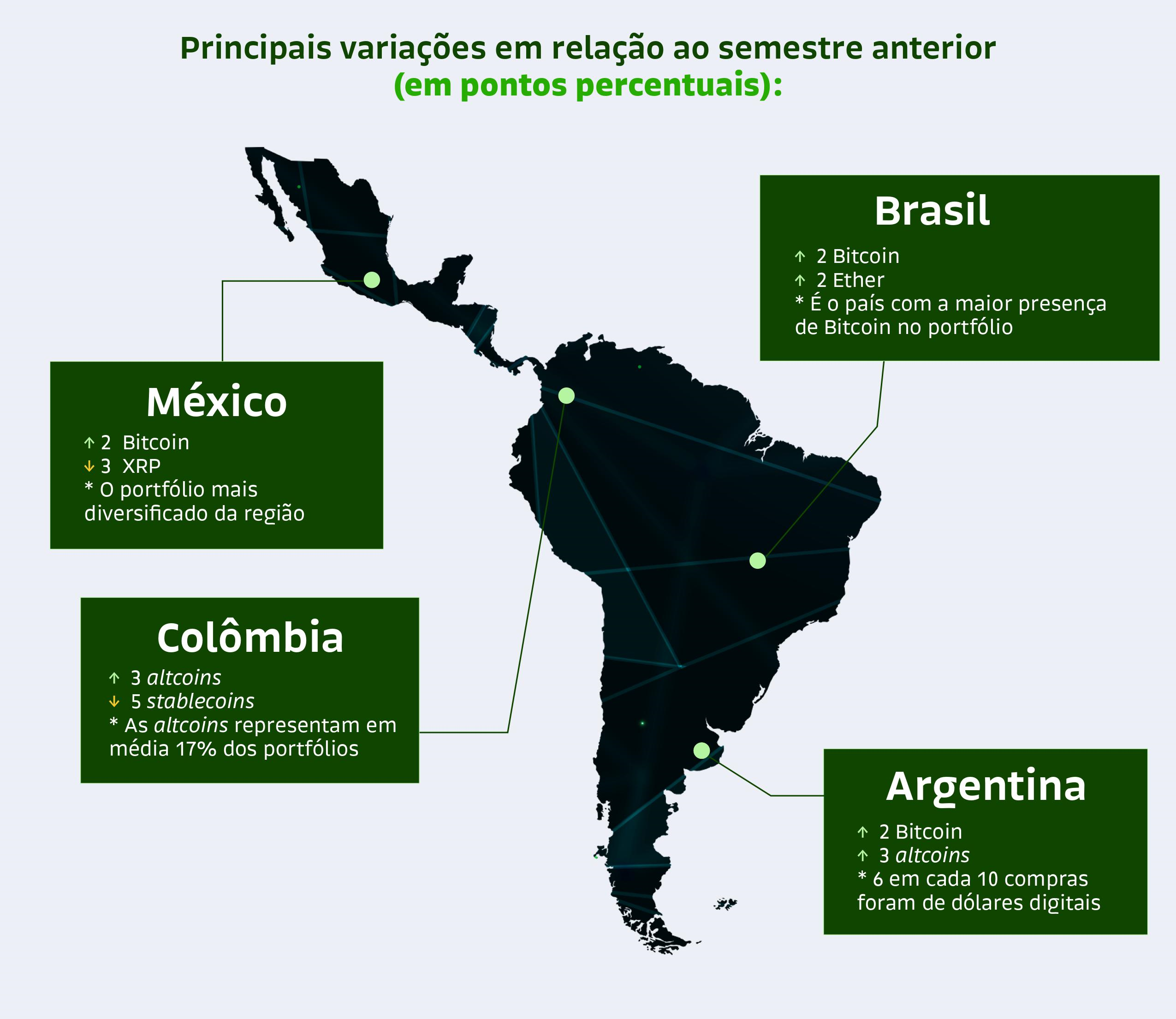 De acordo com o relatório, o Bitcoin representa 60% do portfólio médio dos investidores brasileiros, um aumento de 2 pontos percentuais em relação ao semestre anterior.