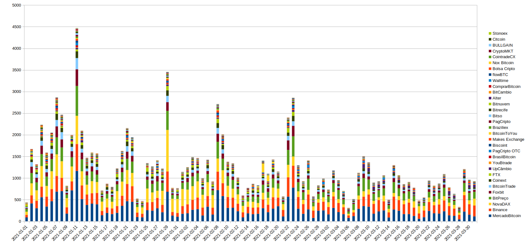 Os dados foram coletados nos canais de API de 32 exchanges brasileiras e se referem a declarações que não foram auditadas.