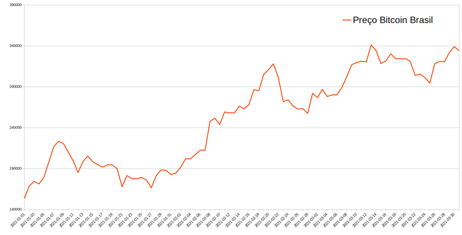 Como lembra a Cointrader Monitor, o valor de 1 BTC era de R$ 36.814,41 no primeiro trimestre de 2020 e, um ano depois, saltou para R$ 251.202.57.