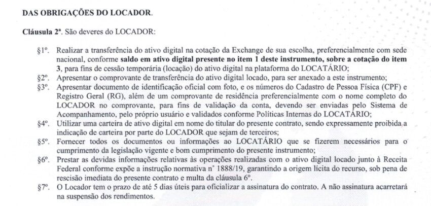 Para Bernardo, a IN 1.888/2019 facilitou para pessoas como Francisley Valdevino da Silva, da Rental Coins, Antonio Neto, da Braiscompany e os donos da Xland. A brecha permite que os “piramideiros” aleguem por um “mal-entendido” com a cessão sobre diretos: aluguel de criptoativos.