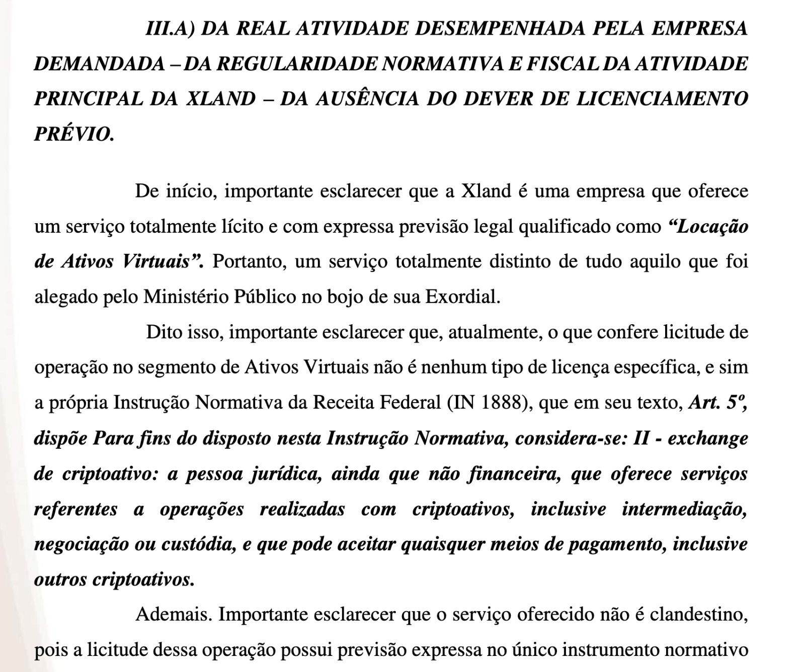 A própria Xland na contestação da ação civil pública movida pelo MP do Acre, onde também tem sede, informou estar em conformidade com a Lei apresentando documentos e a IN 1.888/2019.