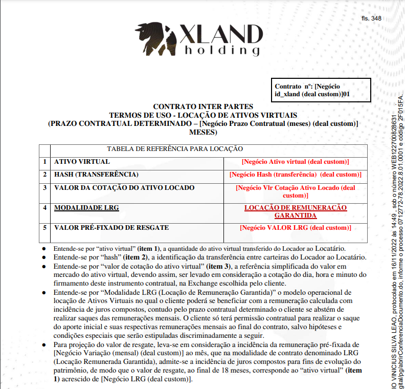 A Xland foi fundada em 2019 por Gabriel de Souza Nascimento e Jean do Carmo Ribeiro. A empresa não é tão grande como a Rental Coins, Braiscompany ou Gas Consultoria, mas captou um valor considerável, principalmente com jogadores de futebol, usando a narrativa de locação de ativos digitais – brecha da interpretação da lei, mas não existe, de acordo com Campos.