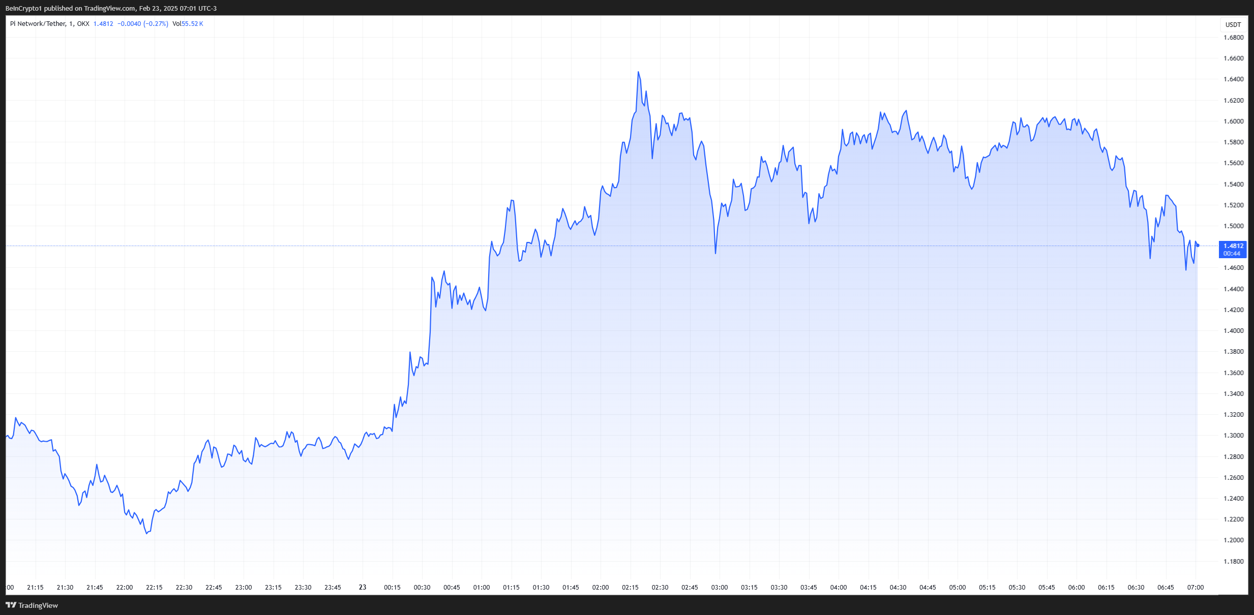 Apesar desses desafios, o token da Pi Network experimentou um aumento acentuado em valor. A PI teve um aumento de 86% em 24 horas, elevando o preço do token para US$ 1,50 no momento da publicação.