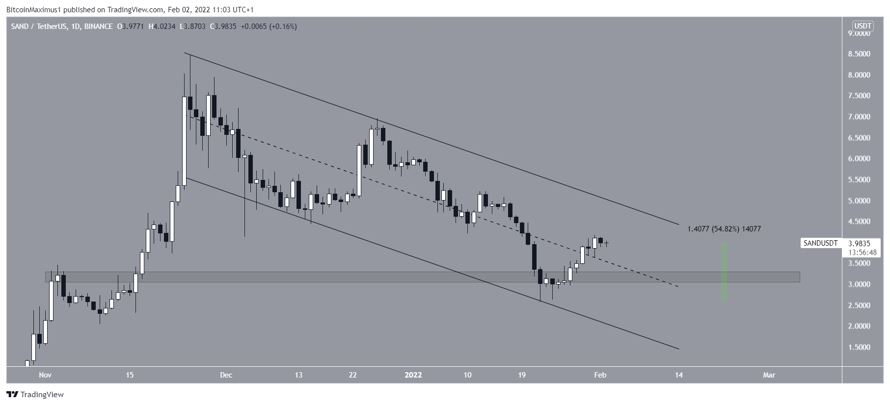 Da mesma forma que a LUNA, o SAND está caindo dentro de um canal paralelo de baixa desde que atingiu um novo preço recorde em 25 de novembro. O movimento levou a uma mínima de US$ 2,55 em 22 de janeiro.