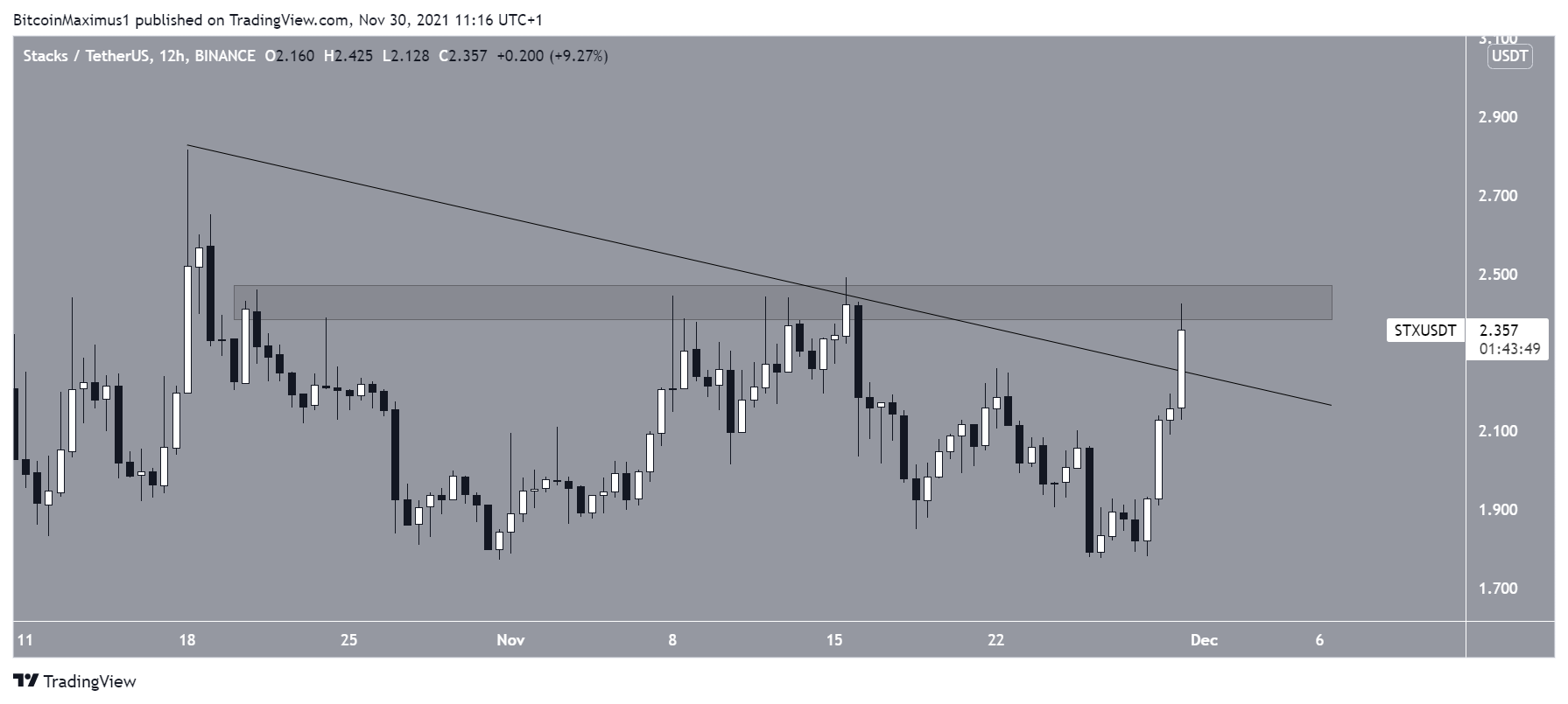 A Stacks (STX) está caindo abaixo de uma linha de tendência de baixa desde 18 de outubro.