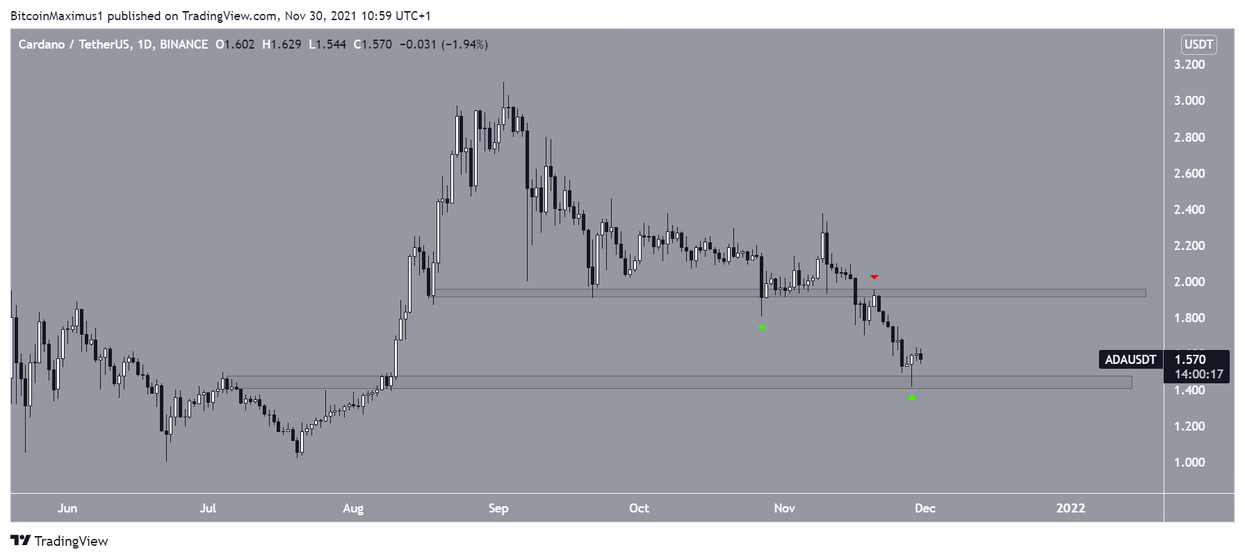 Em 16 de novembro, a Cardano (ADA) rompeu abaixo da área horizontal de US$ 1,95. O token validou o nível como resistência dois dias depois (ícone verde).