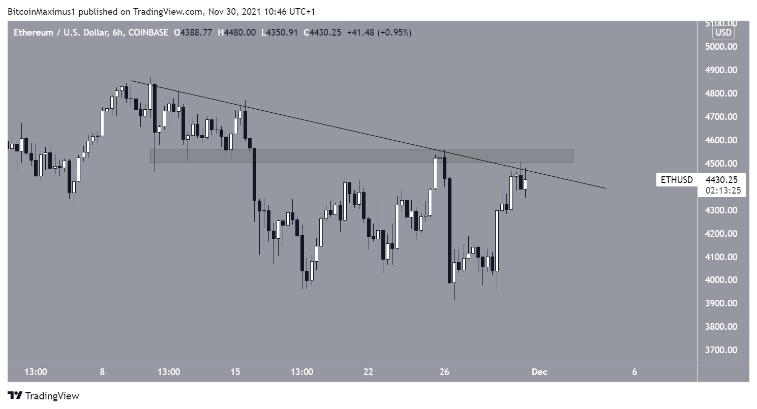 Semelhante ao BTC, o Ethereum (ETH) está em queda desde 10 de novembro, após atingir o preço recorde de US$ 4.867. O token está sendo negociado abaixo de uma linha de tendência de baixa desde então.