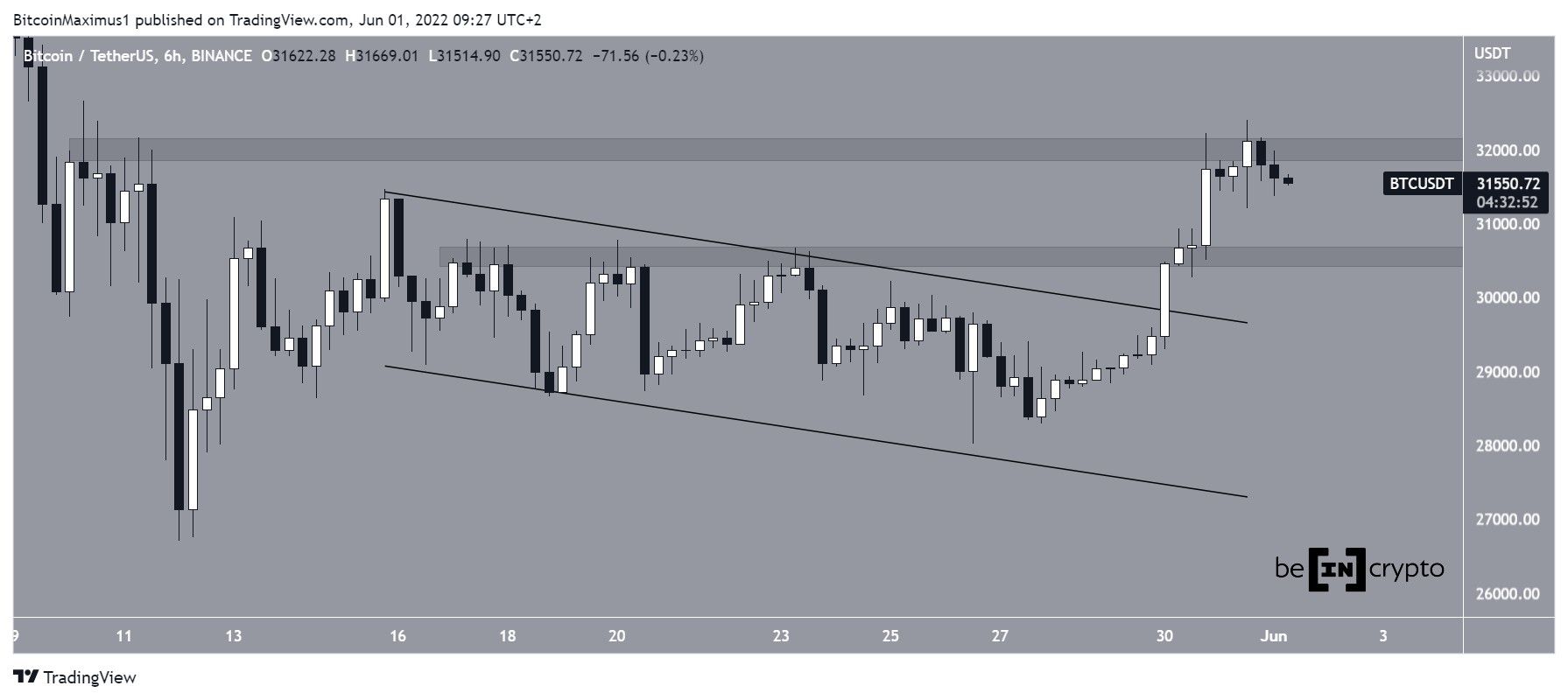 Na última segunda-feira (3), o BTC rompeu um canal paralelo de baixa que estava em vigor desde 16 de maio e atingiu um topo local de US$ 32.399 no dia seguinte.