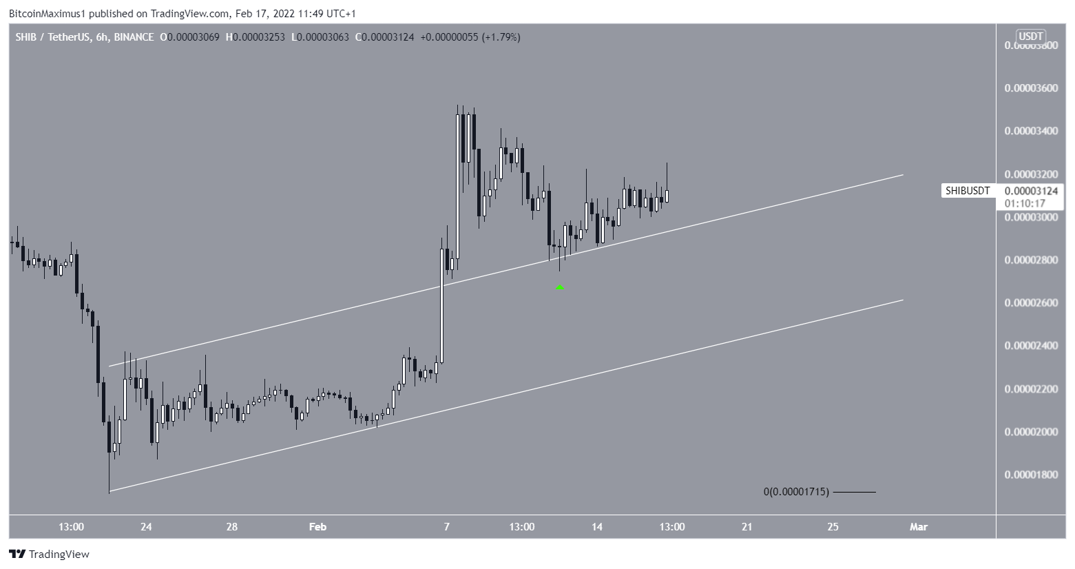 A SHIB está em tendência de alta desde 22 de janeiro, quando atingiu uma mínima de US$ 0,000017. Até agora, o token atingiu um topo em US $ 0,000035 no dia 7 de fevereiro.