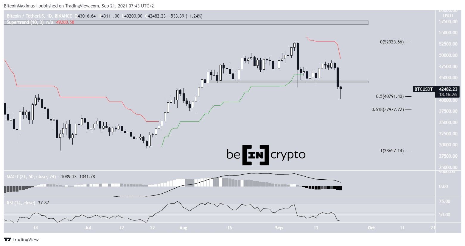 O Bitcoin (BTC) rompeu abaixo da área de suporte horizontal de US$ 44.000.