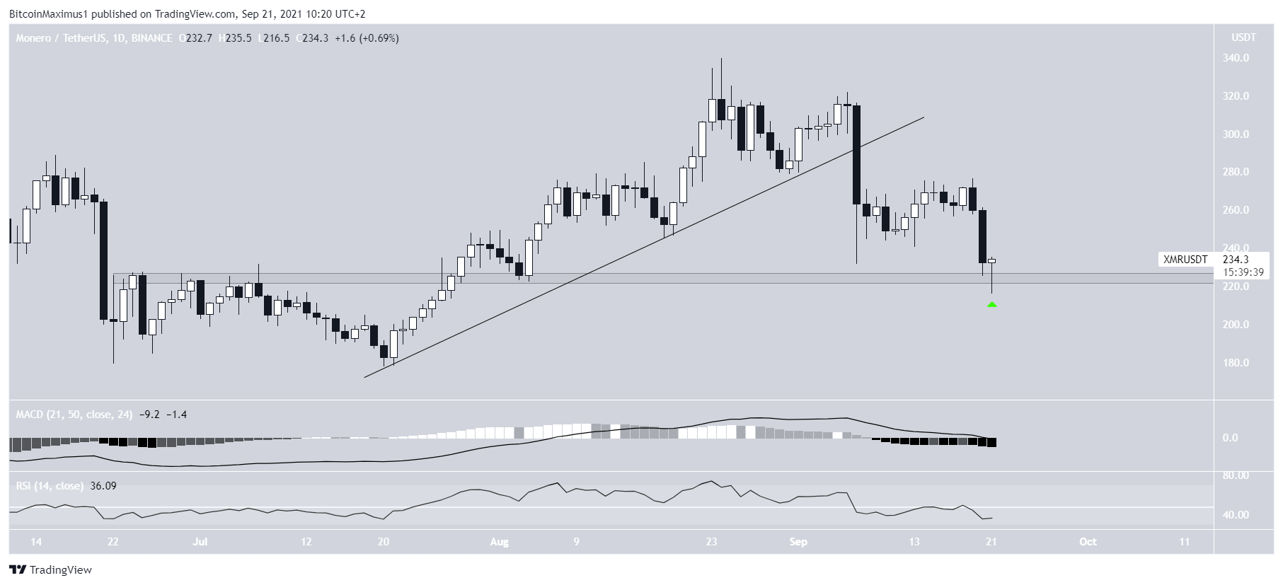 No entanto, a XMR tem caído desde então e rompeu abaixo dessa linha de tendência no dia 7 de setembro.