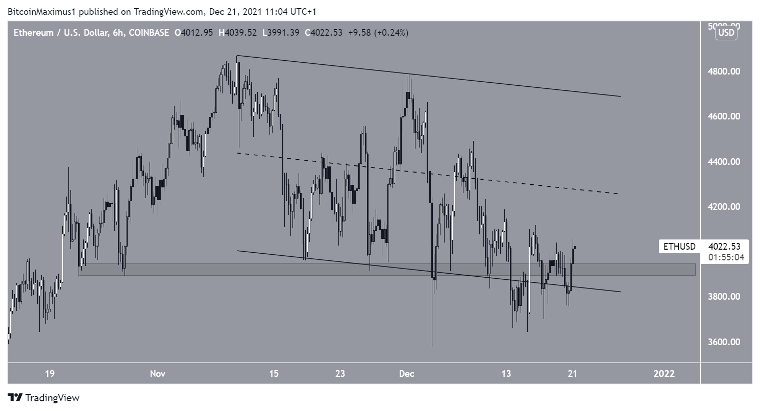Semelhante ao BTC, o ETH também tem sido negociado dentro de um canal paralelo de baixa desde 10 de novembro. Ele rompeu este canal duas vezes, sendo a mais recentemente na última quarta-feira (15).