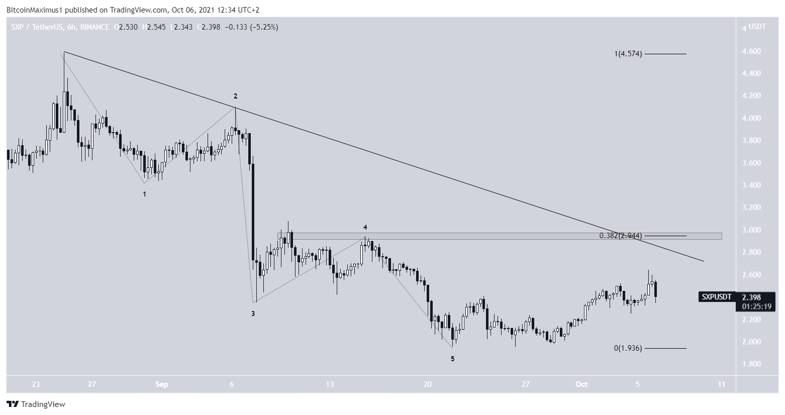 O SXP também está seguindo uma linha de tendência de baixa, desde 7 de setembro. Isso levou a uma mínima de US$ 1,95 alcançada no dia 21 de setembro.