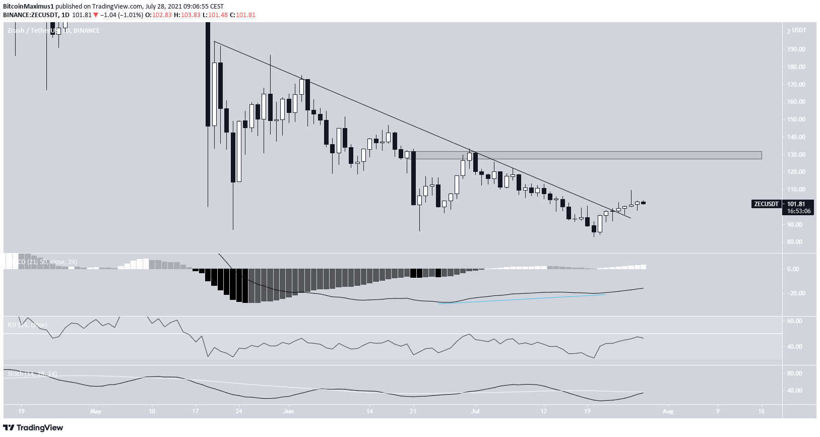Ethereum (ETH) e XRP (XRP) romperam suas linhas de tendências de baixa após a criação de fundos duplos. A Zcash (ZEC) também conseguiu romper sua linha de tendência de baixa, mas não iniciou um movimento de alta até o momento.