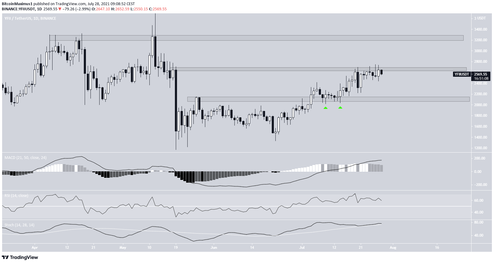A YFII está subindo desde 19 de maio, criando um fundo mais alto do que o anterior em 22 de junho.
