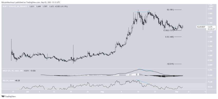 O KLAY tem caído desde o dia 16 de agosto, depois de atingir a máxima histórica de US$ 1,98. Ele criou um padrão de topo duplo no dia 20 de agosto e tem caído desde então.