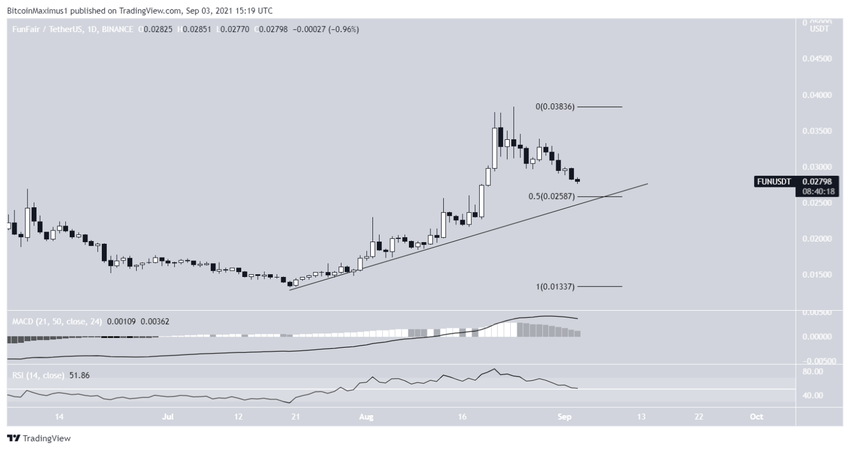 O FUN cresceu junto a uma linha de resistência descendente desde o dia 20 de julho, quando era negociado em uma baixa de US$ 0,013. O movimento de alta continuou até que uma alta de US$ 0,038 foi alcançada em 24 de agosto.