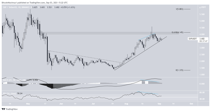 No ia 29 de julho, o SXP rompeu uma linha de resistência descendente e continuou a aumentar até atingir uma alta de US$ 4,58 no dia 25 de agosto.
