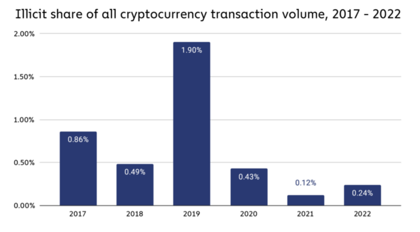 A menção de cripto é o sintoma mais recente da dura fiscalização da SEC à tecnologia. Embora as criptos estejam longe de ser livre de crimes, a atividade criminosa representa uma pequena parcela da economia cripto mais ampla, com menos de 1%. O crime como parte de todas as atividades cripto também está diminuindo, de acordo com a Chainalysis.