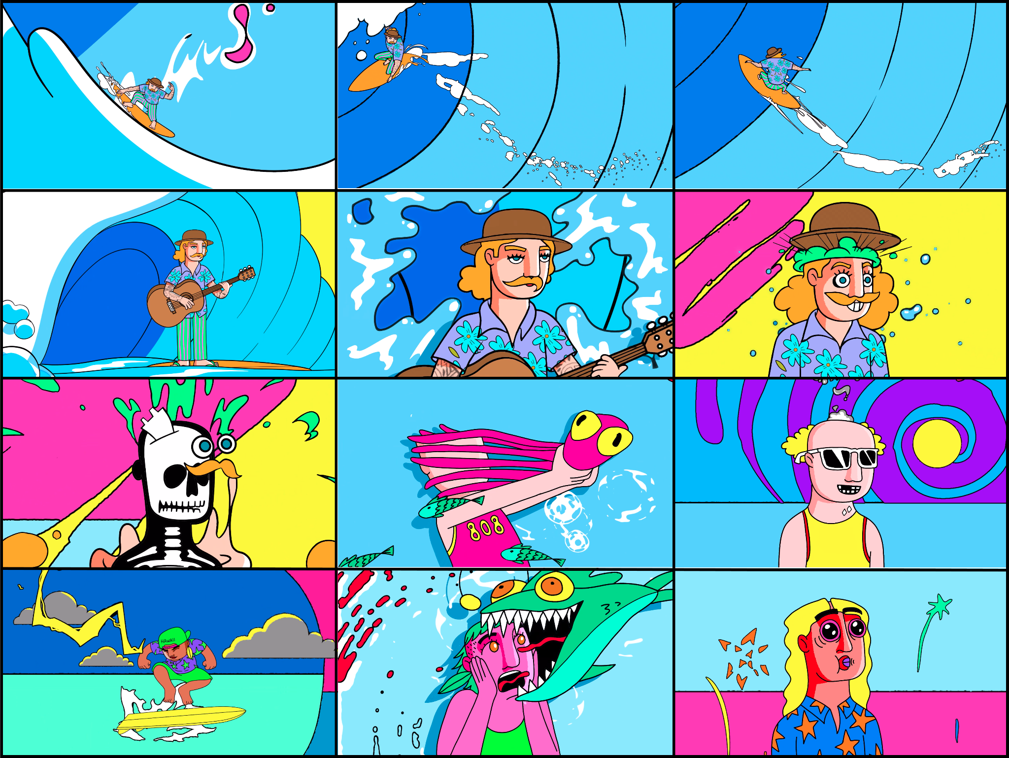 Curiosidade comendo a alma? Calma que pelo menos o Donavon já postou uma animação exclusiva do que vem por aí. A arte foi desenhada manualmente por Marcello Serpa para ilustrar o hit “Move by youself”, um dos maiores clássicos da surf music.