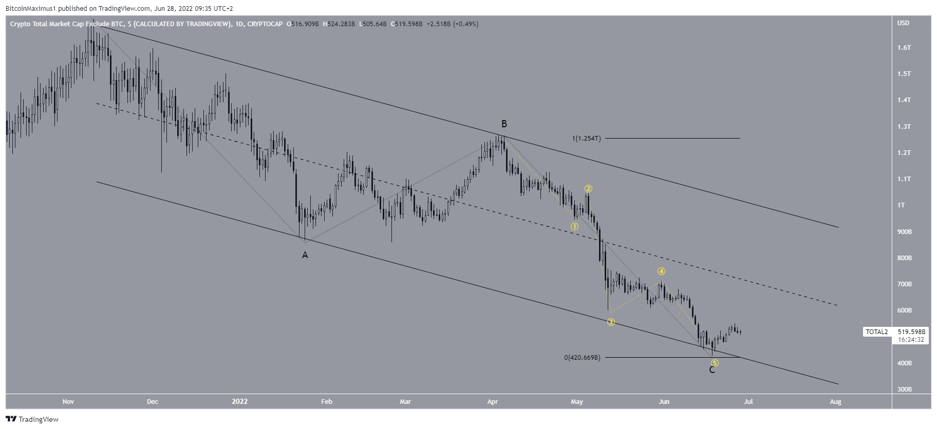 O trader de criptomoedas @Altstreetbet twittou um gráfico do ALTCAP, afirmando que todo o movimento descendente será concluído após outra queda final.