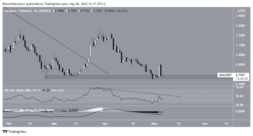 A Cardano (ADA) atingiu nova mínima anual em 30 de abril, formando um padrão de fundo. Apesar do padrão gráfico, os indicadores técnicos não confirmam a reversão de alta.