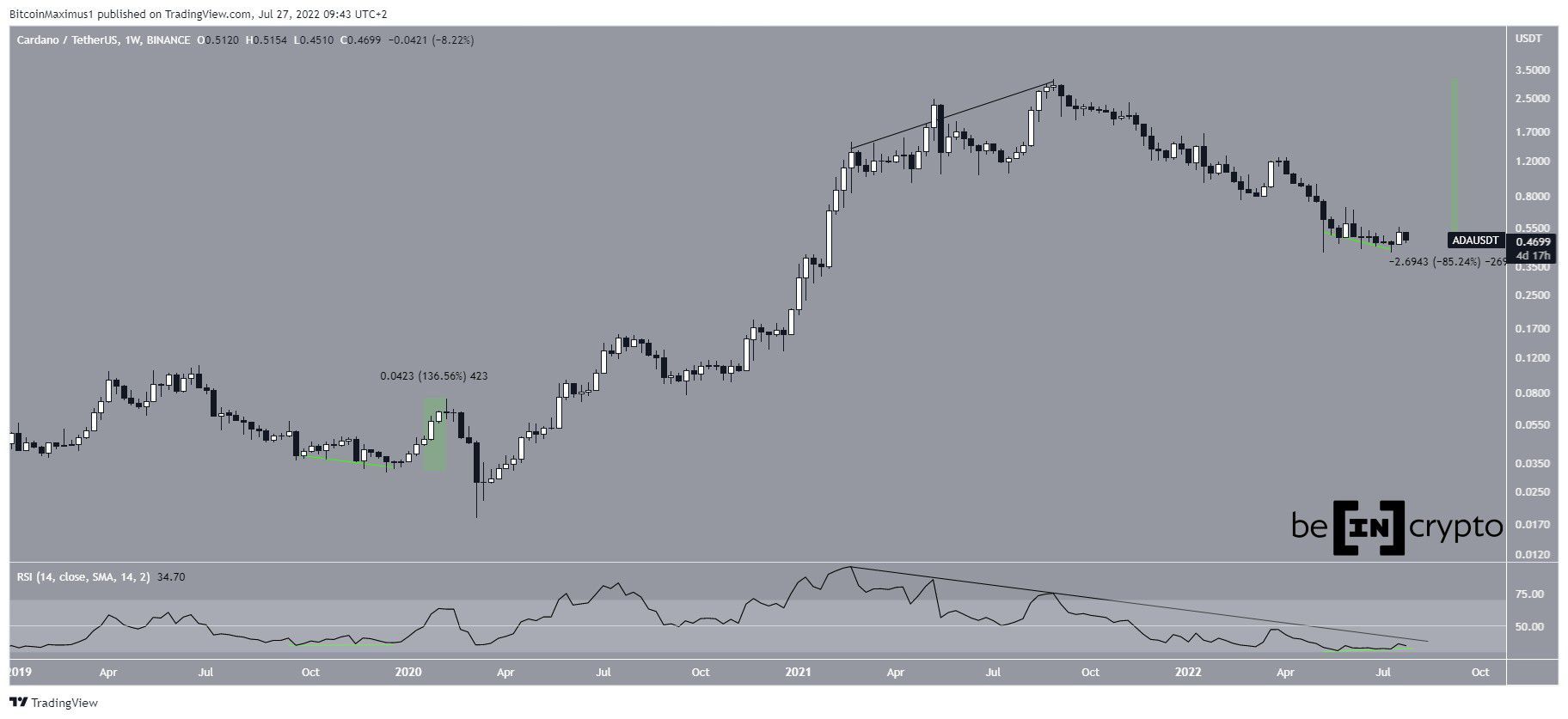 A Cardano (ADA) rompeu uma linha de tendência de baixa de 307 dias depois que tanto o RSI semanal quanto o diário geraram divergências de alta.