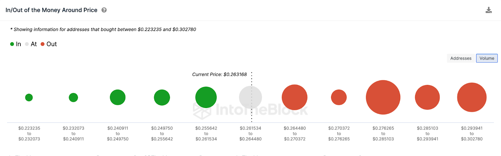 Os indicadores analisados acima sugerem que o aumento no staking de Cardano pode desencadear uma alta de preços em direção ao território de US$ 0,30. Os dados In/Out of Money Around Price, que retratam a distribuição do preço de entrada dos atuais detentores, também valida esta previsão.