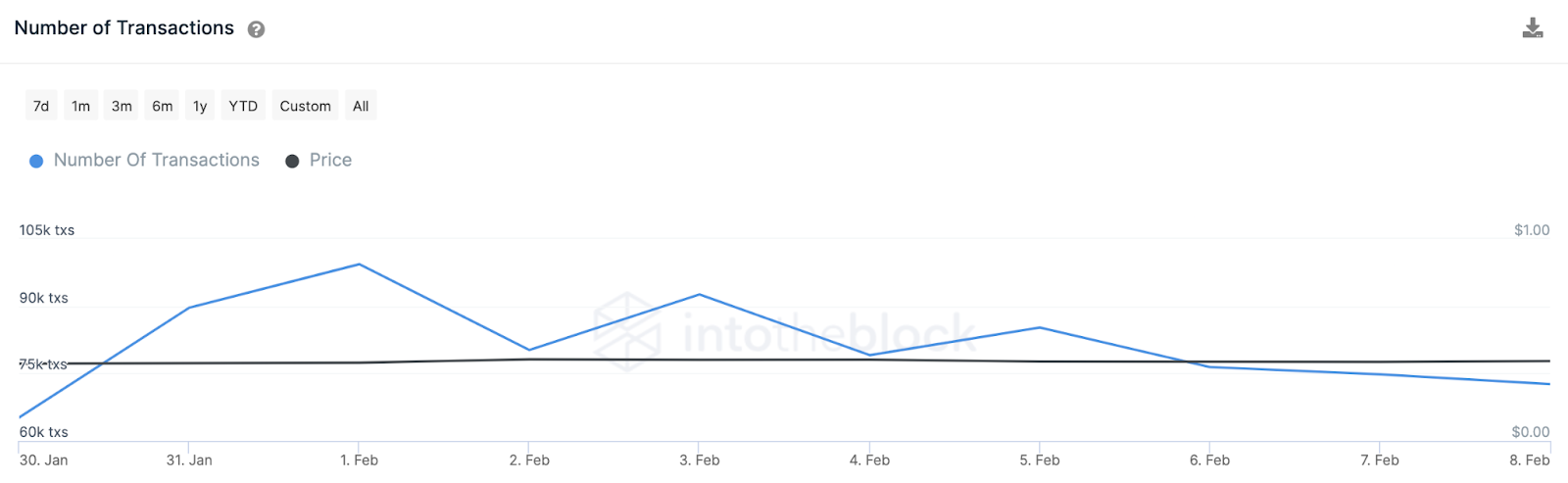 SponsoredOs dados do IntoTheBlock mostram que o número de transações diárias na rede Cardano diminuiu em uníssono com o declínio da ADA. Desde o início de fevereiro, aliás, a contagem de transações caiu 28%.