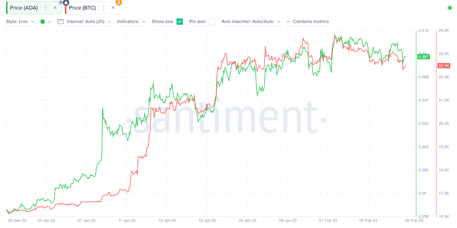 A correlação entre ADA e BTC, por sua vez, ficou mais estreita desde meados de janeiro. Houve um sentimento social de indecisão em torno do Bitcoin em fevereiro em meio a uma queda recente na atividade das baleias. Logo depois, ele pegou a ADA e outras altcoins intimamente correlacionadas em uma armadilha de baixa.