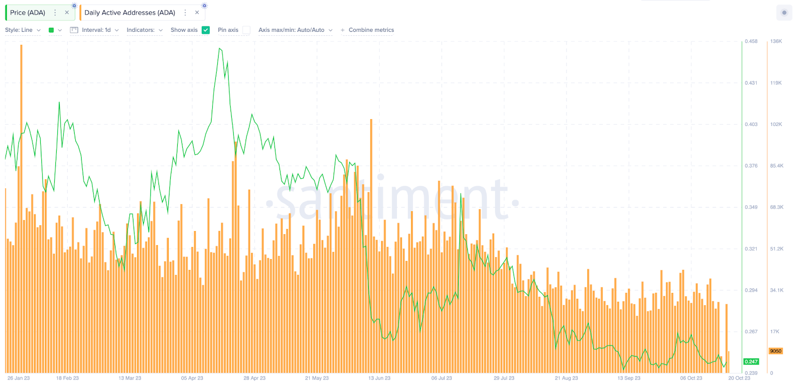 Enquanto isso, a participação na rede tem diminuído nas últimas semanas. Não tendo conseguido atingir a marca de 40.000 em duas semanas, a Cardano registrou apenas 28.538 endereços ativos em 19 de outubro.