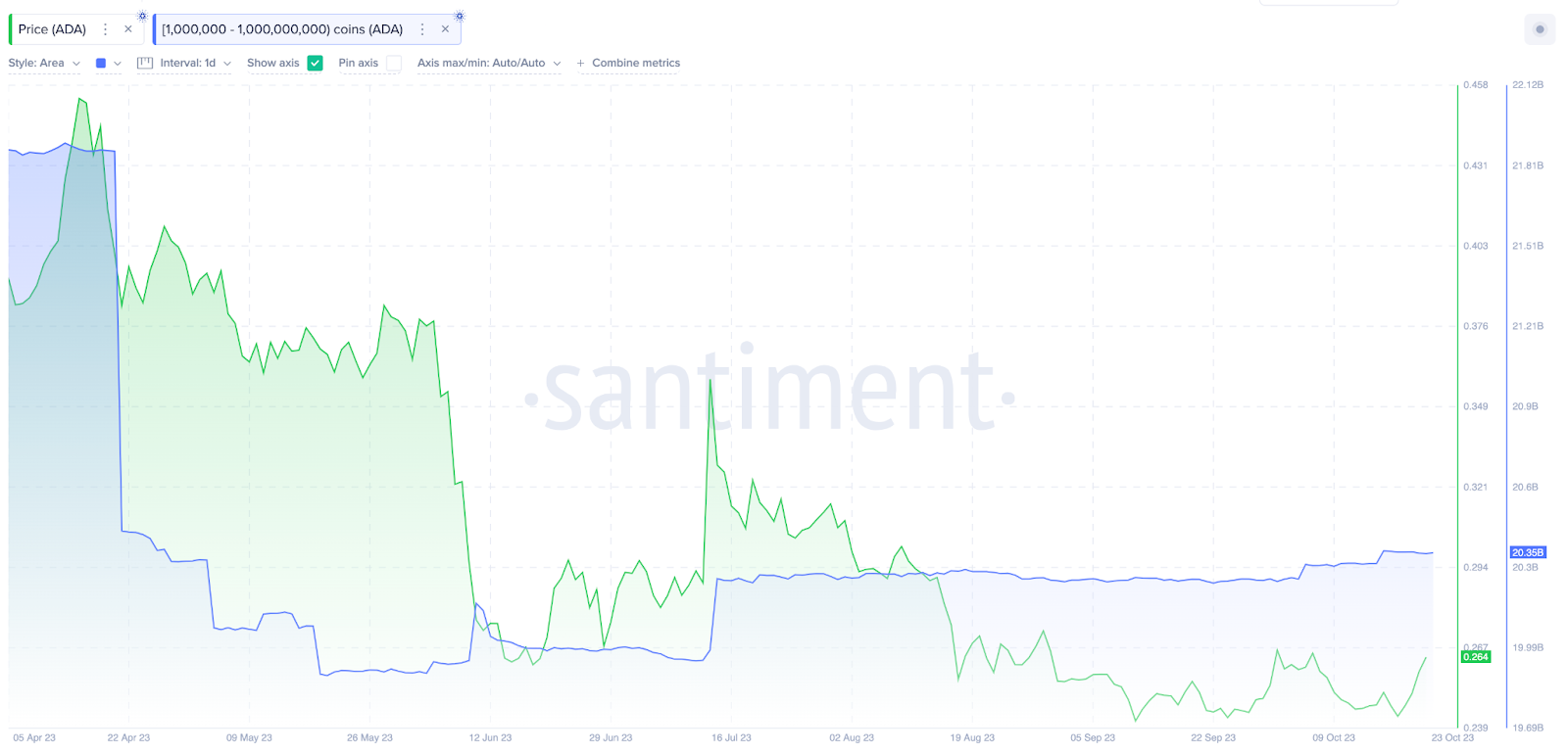 A ADA está presa na faixa de preço de US$ 0,24 – US$ 0,29 desde meados de agosto. Nesse sentido, a análise on-chain mostra se as baleias poderão impulsionar o token acima do nível de US$ 0,30.