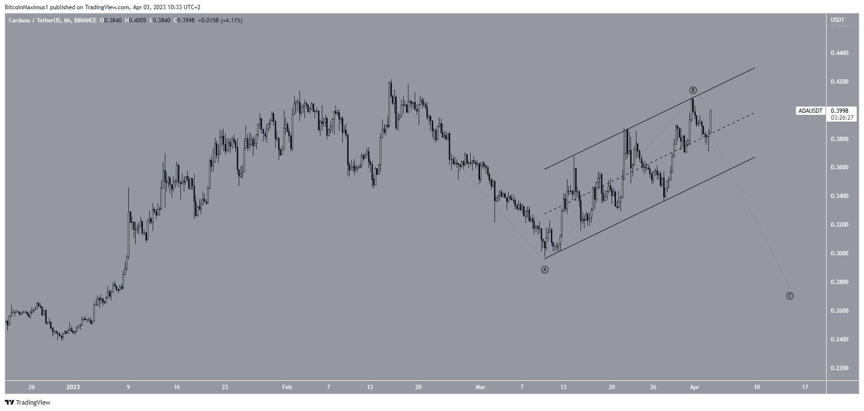 Como resultado, isso sugere que o movimento de alta é a onda B em uma estrutura corretiva A-B-C. Nesse caso, a onda C causará uma queda e levará o preço da ADA para US$ 0,280.