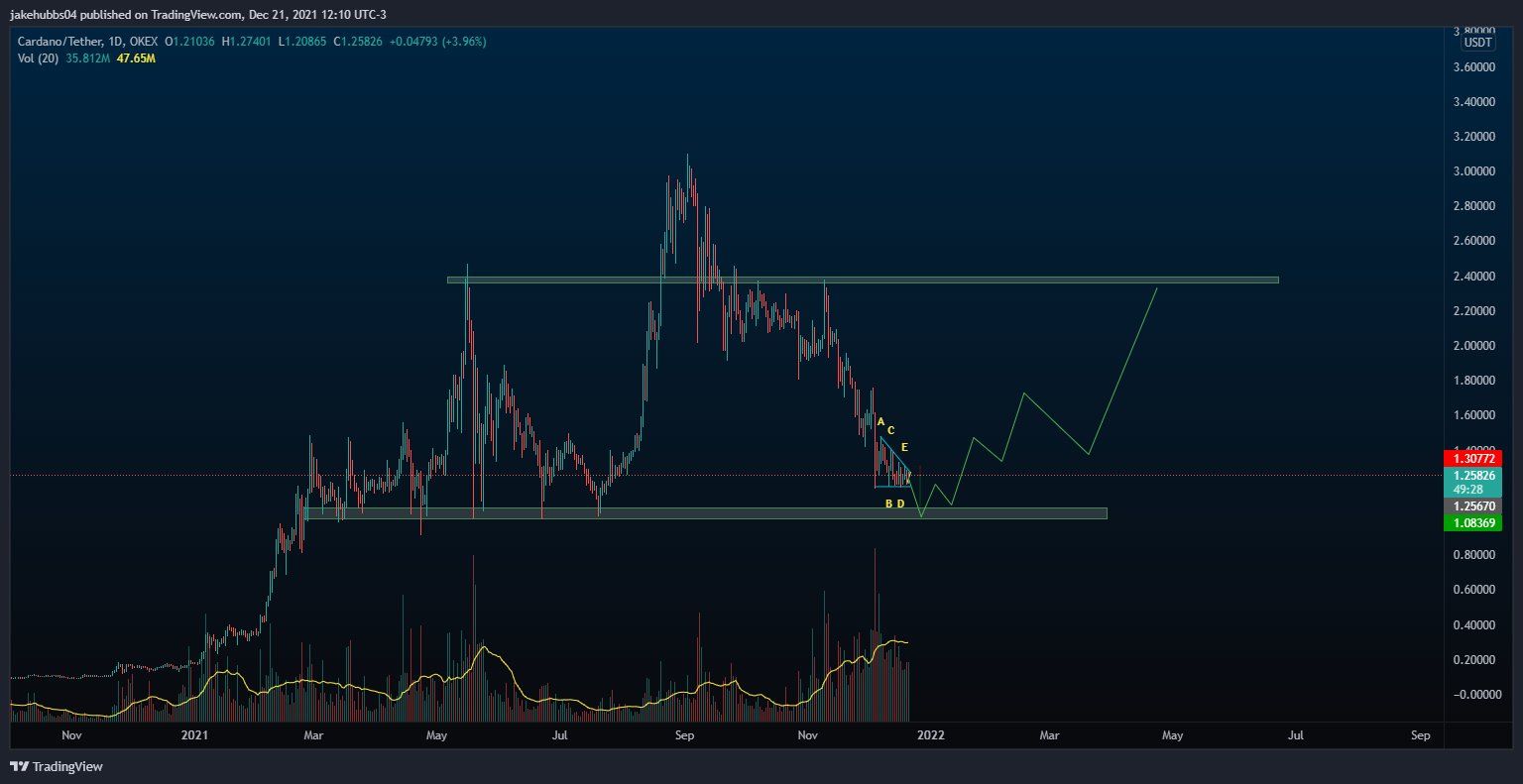 A Cardano (ADA) está seguindo uma linha de tendência de baixa desde que atingiu a máxima histórica de US$ 3,1 em 2 de setembro. O movimento continuou até 4 de dezembro, quando o ativo atingiu um fundo de US$ 1,18.