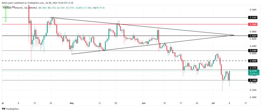 Quando o nível de US$ 0,37 for transformado em um piso de suporte, a Cardano mostrará fortes sinais de recuperação.