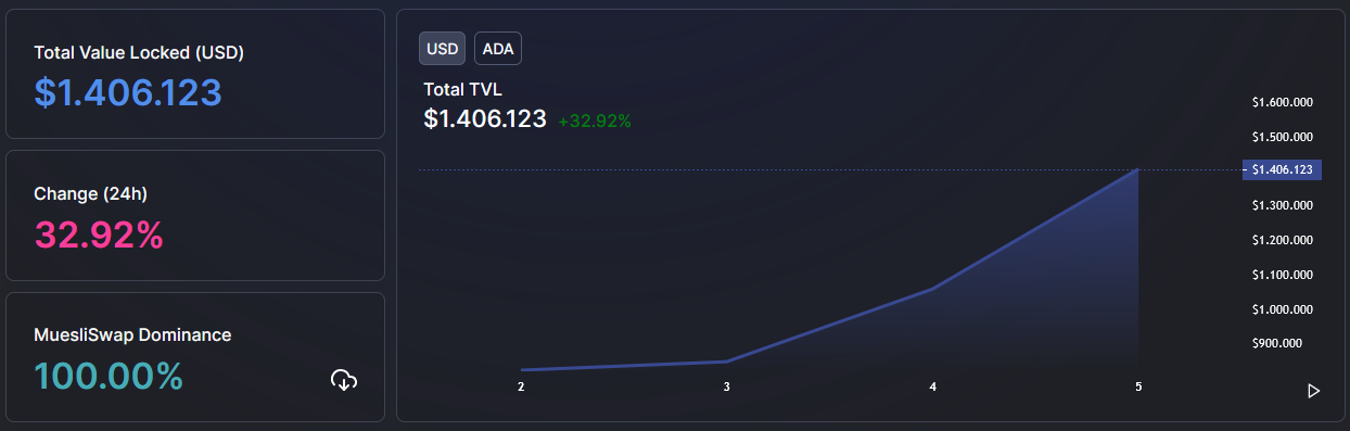 Diversos fatores levavam a crer que a SundaeSwap poderia ser o primeiro grande projeto DeFi a ser lançado. No entanto, a MuesliSwap se antecipou e já está em plena performance, possuindo um Valor Total Bloqueado (TVL) de US$ 1,4 milhão em apenas quatro dias.