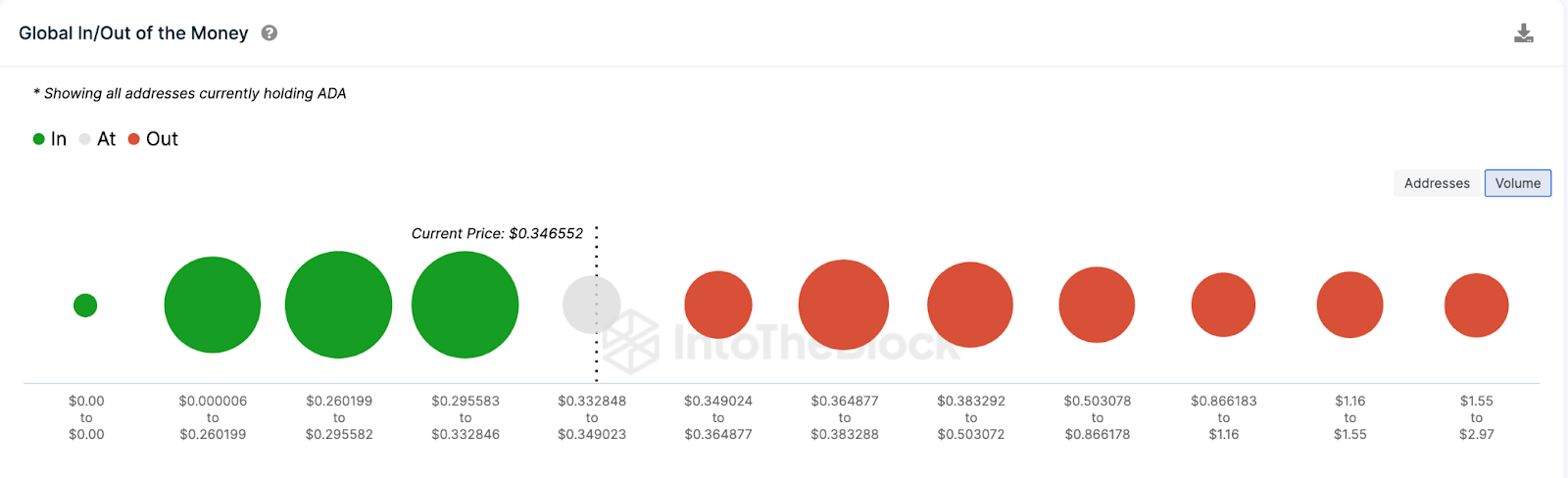 No entanto, os ursos podem impedir esse cenário ao fazer o preço cair para menos de US$ 0,30. Mas, nesse caso, os 438.870 detentores que compraram 6,2 bilhões de ADA ao preço máximo de 0,33 dólares poderiam montar um muro de suporte.