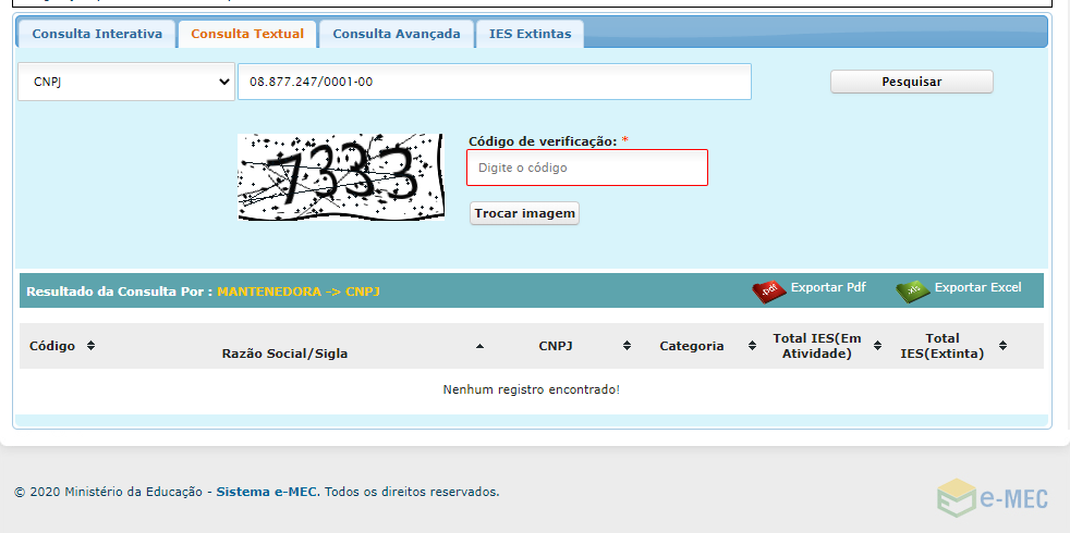 A UniFroebel não aparece em consulta ao Cadastro Nacional de Cursos e Instituições de Educação Superior. A empresa, portanto, não conta com aval Ministério da Educação para ofertar cursos.