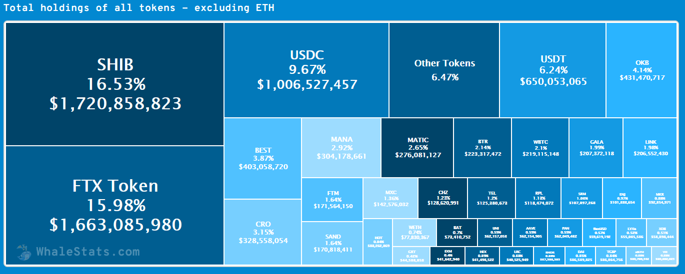 De acordo com informações do WhaleStats, perfil que monitora a movimentação dos 1.000 maiores endereços da rede Ethereum (ETH), as 100 principais baleias de SHIB possuem juntas mais 25% da oferta total em circulação do token. Isso equivale a aproximadamente 137 trilhões de SHIB – cerca de US$ 4,1 bilhões pela cotação atual.