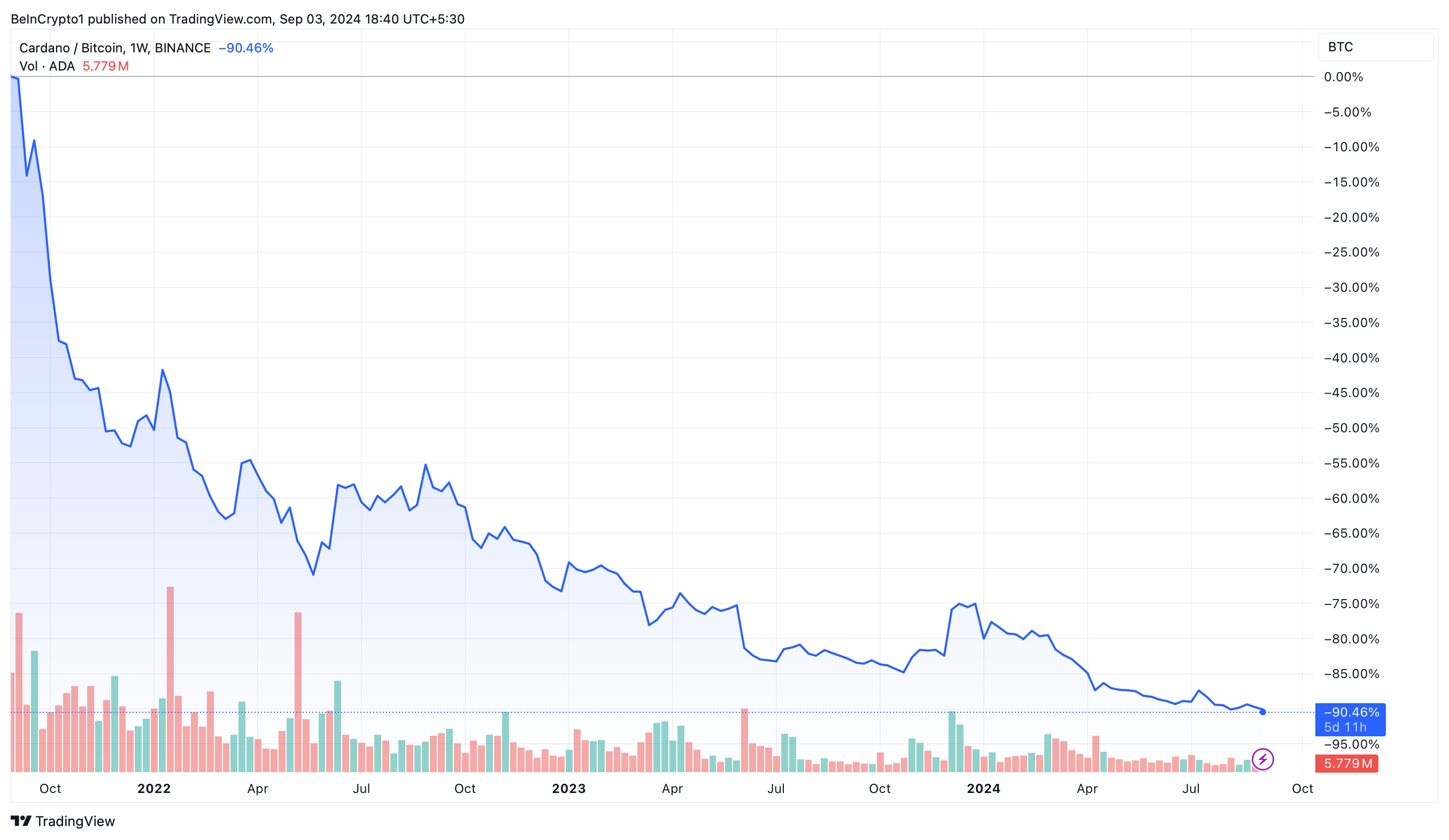 Após a ressurgimento do vídeo, defensores do Bitcoin, incluindo o notório analista Tuur Demeester, criticaram Hoskinson. Demeester destacou a diminuição da capitalização de mercado da Cardano em relação ao Bitcoin nos últimos três anos, que caiu significativamente de 10% para apenas 1% do valor do Bitcoin.