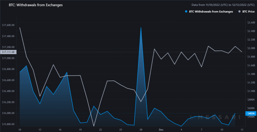 Em novembro, 91.363 moedas no valor de US$ 1,5 bilhão foram removidas de exchanges como Kraken, Coinbase e Binance, de acordo com um relatório do Financial Times. O documento citou os dados do CryptoCompare para destacar que as retiradas de bitcoin atingiram um recorde no mesmo mês.