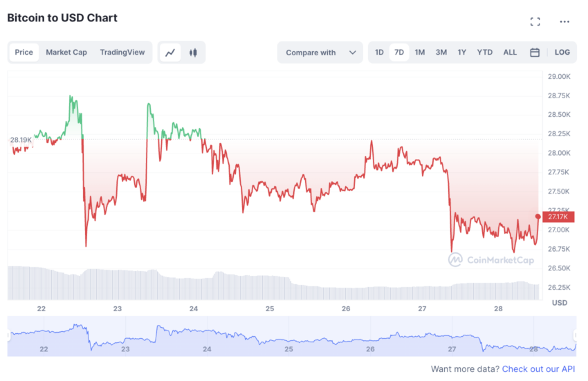 Nos últimos dias, por fim, o preço do BTC variou de US$ 28.422 a US$ 27.299, com ganhos médios de 0,91%, segundo o CoinMarketCap.