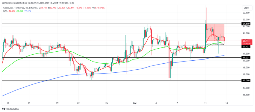 Se o sentimento de baixa pesar muito sobre a Chainlink, ela poderá cair ainda mais para testar o nível de suporte de US$ 19,22. No entanto, a média móvel de 100 dias (verde) está atuando como uma linha de suporte para LINK.